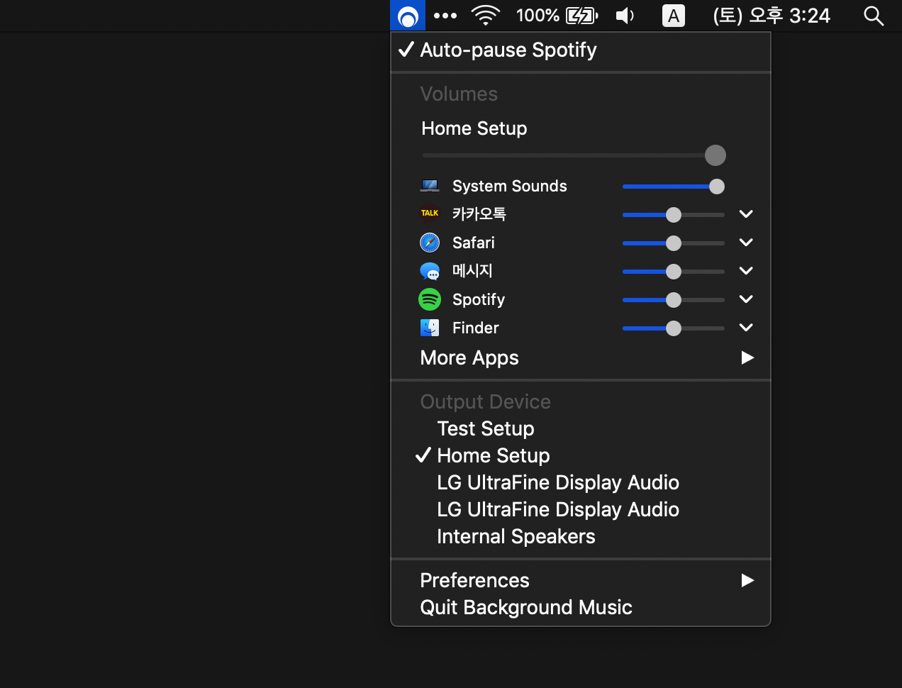 사용 방법은 아주 간단합니다. 그냥 Background Music을 실행한 후 Auto-Pause 기능을 활성화 해주시면 됩니다. 그러나 아쉽게도 외국에서 만들어진 어플리케이션이라 스포티파이, VLC 플레이어, iTunes와 같은 소스들의 경우에만 자동 정지 기능을 사용할 수 있습니다. 우리가 많이 사용하는 벅스나 멜론에 대해서는 해결책을 아직 찾지 못했어요 ㅠㅠ 그러나 저처럼 스포티파이를 사용하시거나, 애플 뮤직을 사용하시는 국내 유저분들께는 큰 도움이 되지 않을까 생각합니다.