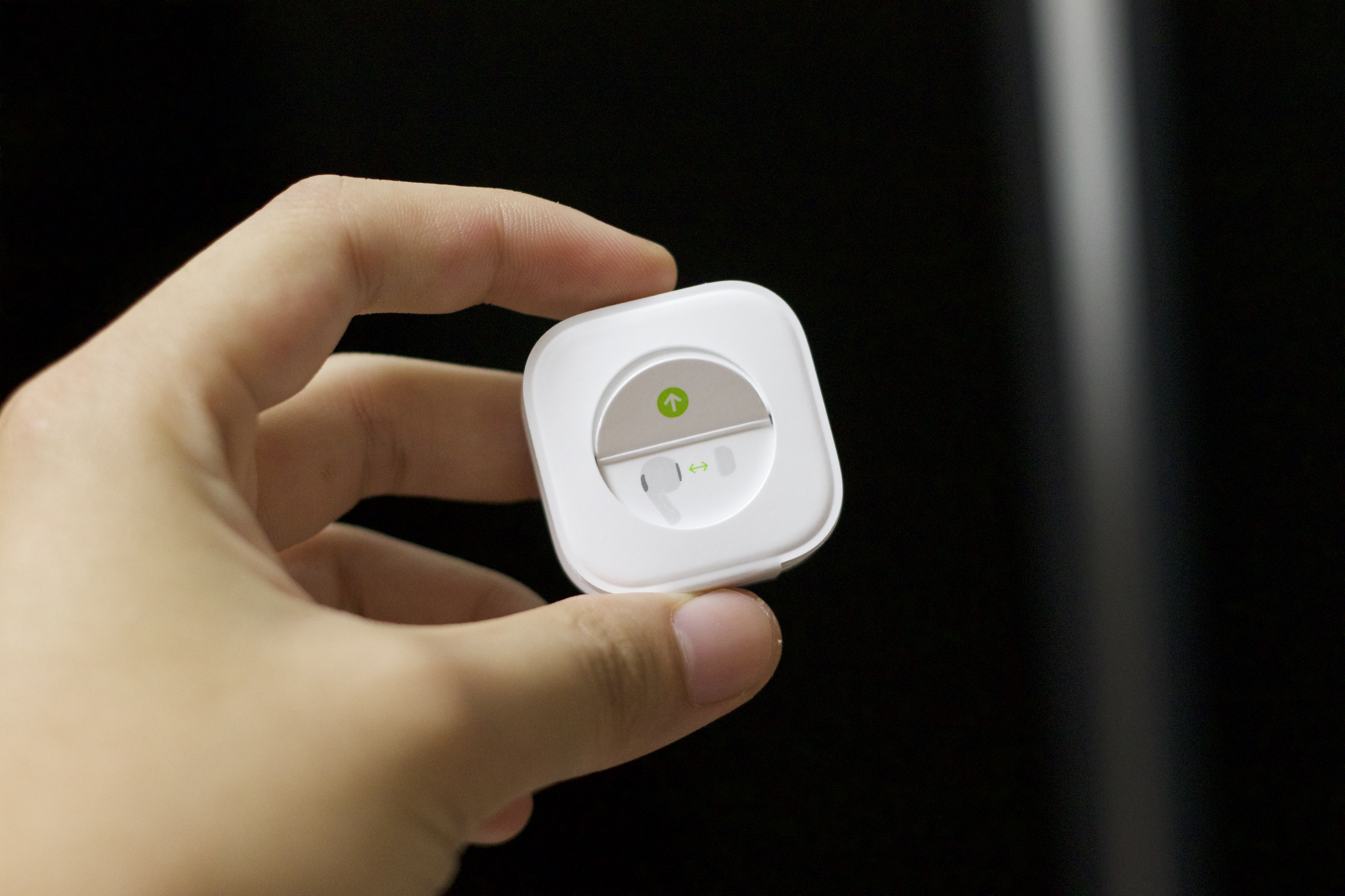 제품을 들어 올리면 그 밑에는 아래와 같은 작은 그림이 하나 그려져 있습니다. 저걸 잡아 올리라는 그림인 것 같습니다. 과거 에어팟 1세대 때에는 밑에 충전 케이블이 들어있다는 사실을 모르고 버리는 사람들이 꽤 됐었다고 합니다. 애플의 짠돌이 정책 때문인지, 아니면 충전 헤드가 없이 케이블만 들어있었어서 그랬는지 사람들이 생각도 하지 못하고 버리는 경우가 있었다고 하더라고요. 그걸 방지하기 위해서 이러한 장치를 넣은게 아닐까 조심스럽게 예상해봅니다. (물론 이어팁을 넣을 공간도 필요했겠지만요 ㅎㅎ)