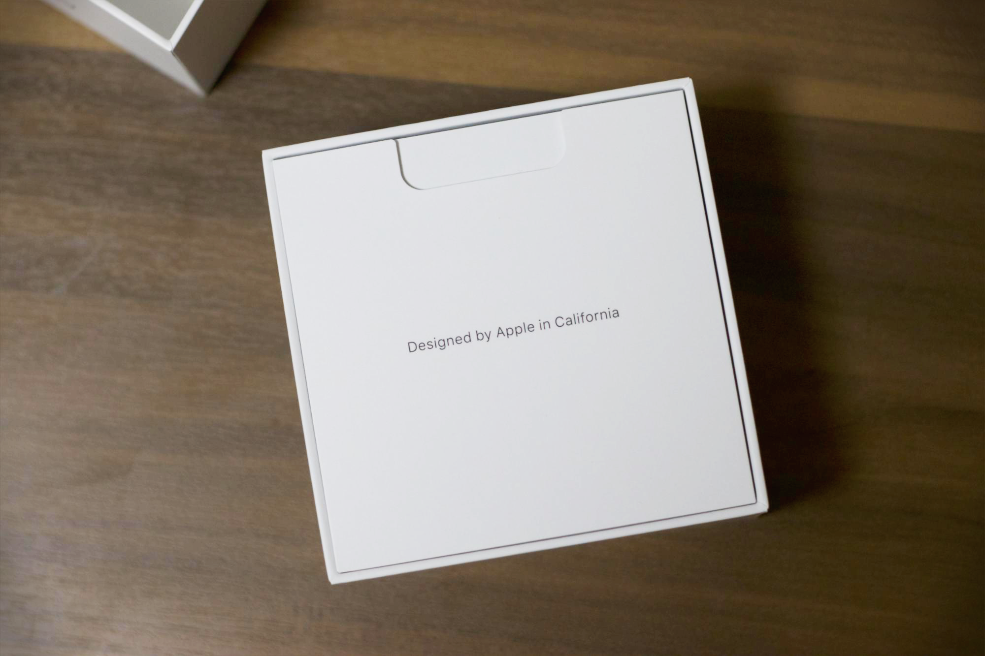 어느 다른 애플 제품들과도 동일하게 열자마자 "Designed by Apple in California"라는 문구가 맞이해주고, 제품에 대한 간단한 설명과 애플 스티커가 들어있는 패킷이 보입니다.