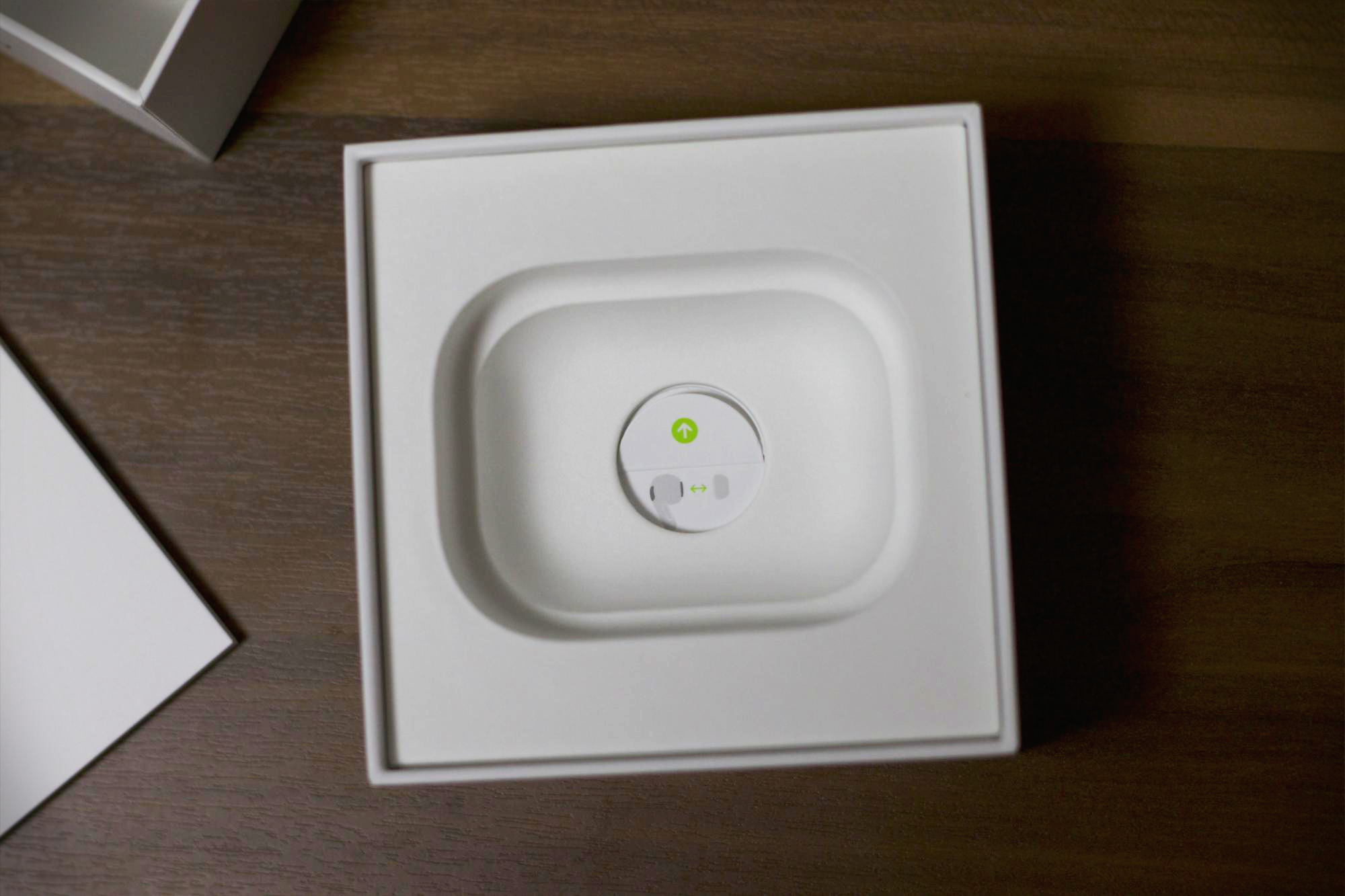 그 패킷을 걷어내면 드디어 에어팟 프로 본품이 보입니다. 가장 먼저 눈에 들어오는 것은 아무래도 충전이 표시되는 인디케이터 LED 입니다. 기존의 에어팟 1세대를 사용했기 때문에 보지 못했던 부분이 에어팟 2세대 무선 충전 케이스부터 바뀌기 시작했습니다. 사실 사용자들의 입장에서는 이러한 변화가 좋은 것 같습니다. 과거 1세대를 충전 할 때에는 일부러 케이스를 열어놓고 충전을 하고는 했었는데, 이제는 그러지 않아도 될 것 같습니다.
